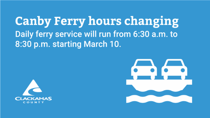 The Canby Ferry will run daily from 6:30 a.m. to 8:30 p.m. starting Sunday, March 10.